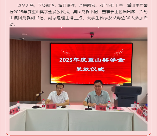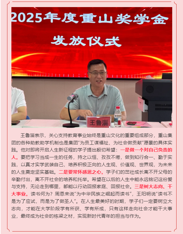 【頭條】金秋筑夢 愛責(zé)同行—重山集團(tuán)舉行2025年度重山獎(jiǎng)學(xué)金發(fā)放儀式