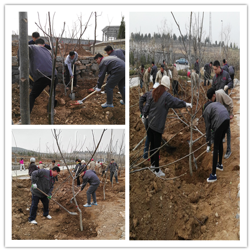 春回大地、萬物復(fù)蘇,為搶抓植樹綠化的好時(shí)機(jī),自三月份開始,集團(tuán)辦公室陸續(xù)展開了一系列植樹綠化活動(dòng),3月20日,根據(jù)樹坑開挖等情況,集團(tuán)辦公室組織財(cái)務(wù)中心、運(yùn)營(yíng)中心、發(fā)展中心、魯中水泥、熱電廠等單位40余人到團(tuán)山生態(tài)園進(jìn)行第一次樹苗栽種。