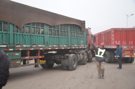 隨著各物料公司節(jié)后開工,近日來,我公司各類供料車輛數(shù)量急劇增加,每日進廠貨車達400輛以上,不僅對我公司進出料過磅統(tǒng)計和物料卸車、盤運等工作造成了巨大壓力,也對廠內外道路交通造成巨大影響。魯中水泥緊急調動供料、物資、銷售、粉磨、旋窯、總務處等各部門力量積極應對,在各進出廠重要路口、路段安排人員指揮疏導車輛,確保交通安全暢通;同時,供料車間、物資部加派人員,加班加點確保過磅統(tǒng)計、物料卸車盤運等工作有序進行。