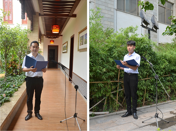 朗誦者們?cè)诩瘓F(tuán)公司風(fēng)景如畫的綠蔭下,在流水潺潺的水池旁,用深情質(zhì)樸的語言,讓一篇篇飽含情感的詞句飄落到人們的心中,感動(dòng)著你我。讓無聲的文字,化為有聲的情感,以厚重的文化氣質(zhì),傳遞溫暖的人文情感。