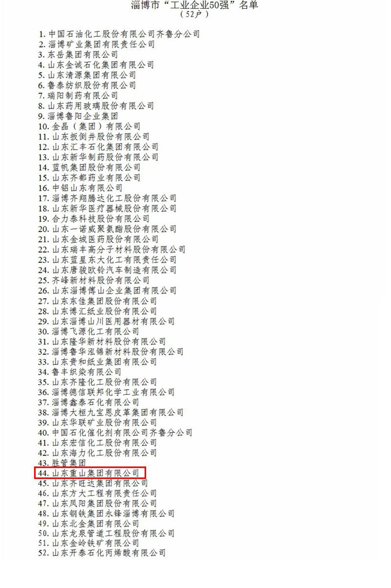 山東重山集團榮獲2017年度淄博市“工業(yè)企業(yè)50強”