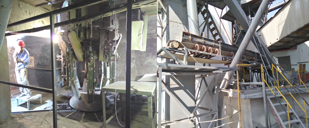 4#包裝機(jī)正在密封;原二車間φ3.2m水泥磨技改入磨皮帶