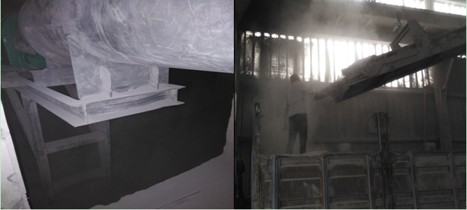 水泥絞刀存在漏料情況 ;裝車處粉塵較大