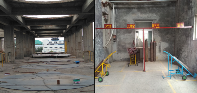 1#立磨空氣斜槽天橋打瓦;廢渣倉(cāng)除塵器安裝平臺(tái)、護(hù)欄