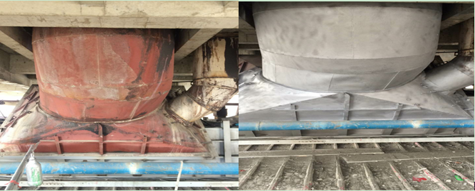 燒成車間窯頭電收塵進(jìn)口管道整改前后對(duì)比