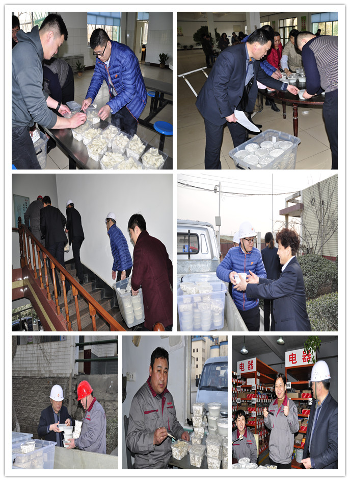 為了保證員工們在除夕夜吃上熱騰騰的餃子,在魯中水泥綜合辦主任王樹俊、副主任崔川的統(tǒng)籌協(xié)調下,由總務處負責相關材料和輔助工具的準備工作,各生產單位負責調集幫廚人員,除夕一早開始,從調餡料、和面、包水餃、熬粥,一直到水餃出鍋、裝盒,整個活動在大家的配合下有條不紊的進行,下午18:00左右,裝好的水餃由各單位正職親自送到了每一個崗位、每一個在崗員工的手中,一盒水餃、一碗粥,雖不似年夜飯的豐盛,卻溫暖了每一名員工的心。