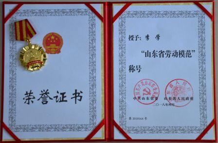 熱烈祝賀李學(xué)董事長榮獲“山東省勞動模范”榮譽(yù)稱號