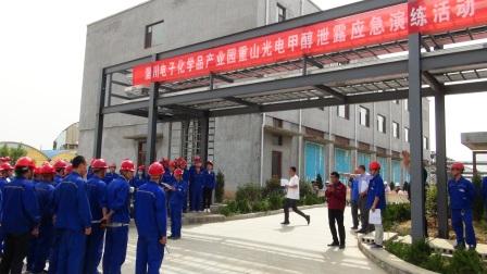 此次演練以重山光電甲醇儲罐由于管道損壞,引起甲醇泄漏,造成巡檢人員中毒,應(yīng)急處置過程中發(fā)生次生火災(zāi)事故為模擬場景,針對甲醇泄漏、中毒、火災(zāi)等事故進(jìn)行了專項應(yīng)急預(yù)案演練。在現(xiàn)場總指揮協(xié)調(diào)和各參與部門的配合下,演練有條不紊進(jìn)行并達(dá)到預(yù)期效果。