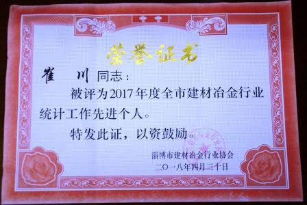 魯中水泥崔川榮獲全市建材冶金行業(yè)綜合統(tǒng)計(jì)先進(jìn)工作者