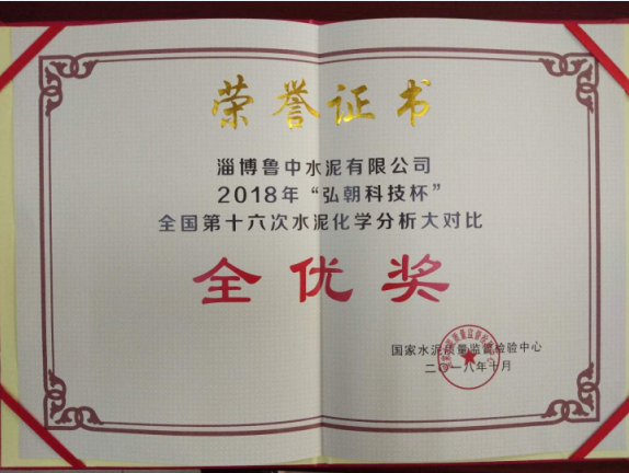 近日,魯中水泥榮獲由國家水泥質(zhì)量監(jiān)督檢驗(yàn)中心頒發(fā)的2018年“弘朝科技杯”全國第十六次水泥化學(xué)分析大對比全優(yōu)獎。