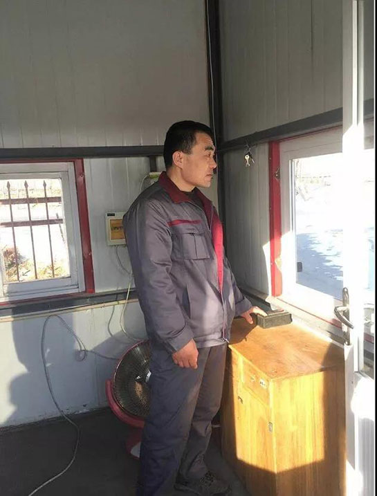 水泥車間王木軍守衛(wèi)在辦公區(qū)門崗