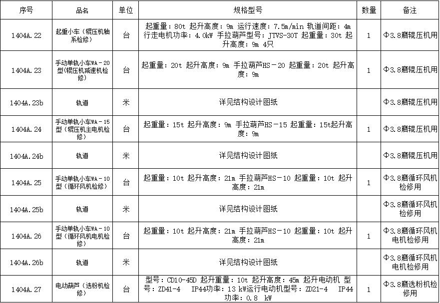 2. 手動(dòng)單軌小車:10臺(tái)(起重量10T-20T);