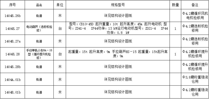 根據(jù)公司《采購(gòu)招標(biāo)管理制度》,淄博魯中水泥有限公司定于3月21日—28日對(duì)φ3.8m、φ4.2m水泥磨輥壓機(jī)配套起重設(shè)備進(jìn)行公開(kāi)招標(biāo),具體項(xiàng)目如下: