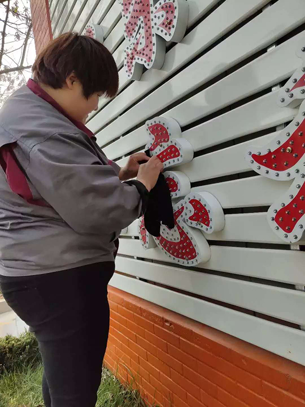 物資部文化墻上“心系重山,精誠服務(wù),不忘初心,砥礪前行”十六個字真正體現(xiàn)了她們?yōu)楣ぷ鞯臒o私奉獻。在保持5S現(xiàn)場管理標(biāo)準上,她們依然用瘦弱的身影平凡而堅定的踐行著致良知精神。