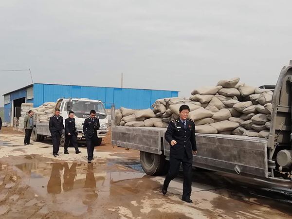 4月24日,魯中水泥銷售公司東營(yíng)片區(qū)業(yè)務(wù)人員在市場(chǎng)摸排調(diào)研中發(fā)現(xiàn)廣饒縣小崗建材商戶出售的“重山”品牌PF32.5水泥與公司產(chǎn)品外包裝嚴(yán)重不符,一輛車牌號(hào)為魯E28090車輛滿載重山牌水泥在門店外售賣。經(jīng)多方走訪調(diào)查,公司及各經(jīng)銷商近期PF32.5型號(hào)水泥并沒有銷售給小崗建材,最終確定為假冒產(chǎn)品。  隨后,公司主動(dòng)聯(lián)系當(dāng)?shù)厥袌?chǎng)監(jiān)管執(zhí)法部門,并整理相關(guān)材料匯報(bào)廣饒縣市場(chǎng)監(jiān)管局,執(zhí)法部門十分重視,在做好充分摸排工作后,于4月26日與公司打假人員聯(lián)合展開行動(dòng),當(dāng)場(chǎng)查獲假冒重山PF32.5型號(hào)水泥27噸、假冒重山PC42.5水泥6噸。本次打假行動(dòng)既是對(duì)合法經(jīng)銷商的一種鼓勵(lì),也是對(duì)非法謀利者的沉痛打擊,起到了凈化當(dāng)?shù)厮嗍袌?chǎng)的作用,彰顯了公司堅(jiān)決維護(hù)品牌權(quán)益和消費(fèi)者利益的決心。