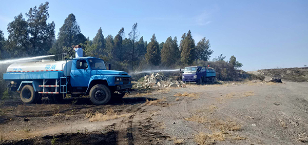 5月29日下午,供料車間員工在工作中發(fā)現(xiàn)南韓村米山發(fā)生山火,迅速聯(lián)系集團(tuán)總務(wù)處主任王宏和羅村鎮(zhèn)森林消防隊(duì),接到火情通知后,王宏迅速組織帶領(lǐng)保衛(wèi)隊(duì)員和灑水車與森林消防隊(duì)積極配合,展開(kāi)撲救工作,由于失火點(diǎn)多,又產(chǎn)生復(fù)燃等狀況,給撲救工作帶來(lái)較大困難。經(jīng)過(guò)6個(gè)小時(shí)的奮力撲救,終于在夜間九點(diǎn)成功撲滅了各個(gè)失火點(diǎn)和復(fù)燃點(diǎn)。重山集團(tuán)的社會(huì)責(zé)任再次在這次山火撲救中得到了充分體現(xiàn),用實(shí)際行動(dòng)踐行了致良知。