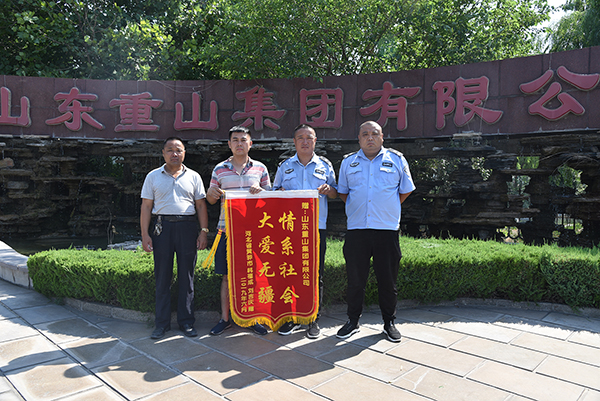 7月5日一早,集團(tuán)總務(wù)處迎來了一位特殊的客人——黃驊市滄洲啟航車隊韓福成,他將兩面“情系社會 大愛無疆”和“正氣浩然 品德高尚”的錦旗送到總務(wù)處主任王宏的手上。鮮艷的錦旗,滾燙的熱情渲染著總務(wù)處,表達(dá)出對重山集團(tuán)感激之情。感謝重山集團(tuán)在6月22日車隊貨車側(cè)翻的義務(wù)救援,是重山挽救了他們的生命,挽救了他們的財產(chǎn)。感謝總務(wù)處主任王宏等一班人做好事不求回報的精神。重山人的大愛情系著社會每個人,用實際行動詮釋著致良知思想的內(nèi)涵和意義,充分體現(xiàn)了重山集團(tuán)的社會擔(dān)當(dāng)和致力構(gòu)建和諧社會的決心。