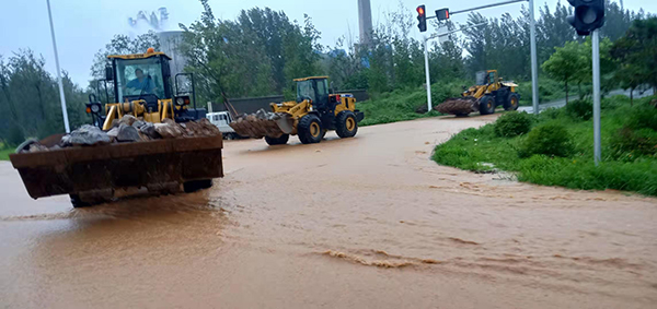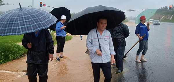 受臺(tái)風(fēng)“利奇馬”的影響,自8月10日的持續(xù)降雨造成公司部分路段積水嚴(yán)重。尤其是職工生活區(qū)與102省道交界處積水成湖,這個(gè)路段是生活區(qū)職工上下班的必經(jīng)之道,也是變電站電纜溝所在地,大量積水加帶湍急的水流對(duì)上下班職工造成嚴(yán)重影響,也威脅著變電站的安全運(yùn)行。11日早晨,集團(tuán)公司總經(jīng)理王魯淄得知這一消息立刻趕往現(xiàn)場(chǎng)部署工作。熱電廠韓紀(jì)永、張斌、趙剛、魯中水泥王樹俊,集團(tuán)總務(wù)處王宏、王立群、陳萬鵬等現(xiàn)場(chǎng)成立防汛抗洪小組。一邊對(duì)現(xiàn)場(chǎng)進(jìn)行警戒,組織員工挖渠排水、擺放沙袋。另一邊協(xié)調(diào)供料車間、熱電廠4臺(tái)鏟車支援。4臺(tái)鏟車馬不停蹄從料場(chǎng)運(yùn)石頭到現(xiàn)場(chǎng)筑堤,經(jīng)過近6小時(shí)的緊張工作,近百余袋沙袋和40噸石頭在電纜溝筑起一道安全防護(hù)堤,及時(shí)阻止了山洪對(duì)電纜溝的沖擊,保證了員工的人身安全和公司正常生產(chǎn)。