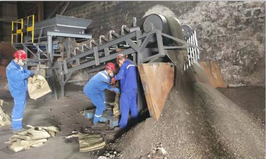 為了有效改善這一難題,生產(chǎn)技術(shù)部成立了研發(fā)小組,針對(duì)爐渣特性,自主研發(fā)制作強(qiáng)磁滾筒皮帶除鐵機(jī)。研發(fā)小組從廢舊設(shè)備堆挑選出淘汰的電氣設(shè)備和舊皮帶機(jī),邊試驗(yàn)邊改進(jìn),歷經(jīng)15個(gè)工作日研發(fā)成功變頻式強(qiáng)磁皮帶除鐵機(jī)。投入現(xiàn)場(chǎng)試車后,設(shè)備性能穩(wěn)定、故障率低、揚(yáng)塵小,除鐵效果高達(dá)到98%以上,篩選人工只需原來的一半,降低人工成本的同時(shí),有效改善了工作強(qiáng)度和工作環(huán)境,工作效率大大提高。