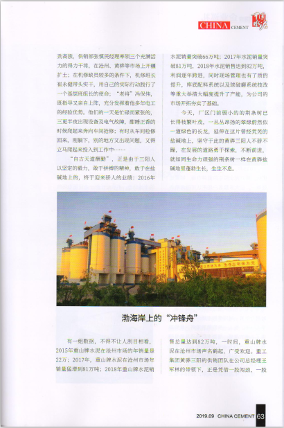 凝心聚力 創(chuàng)新圖強(qiáng)——《中國(guó)水泥》刊發(fā)黃驊三陽(yáng)公司紀(jì)實(shí)