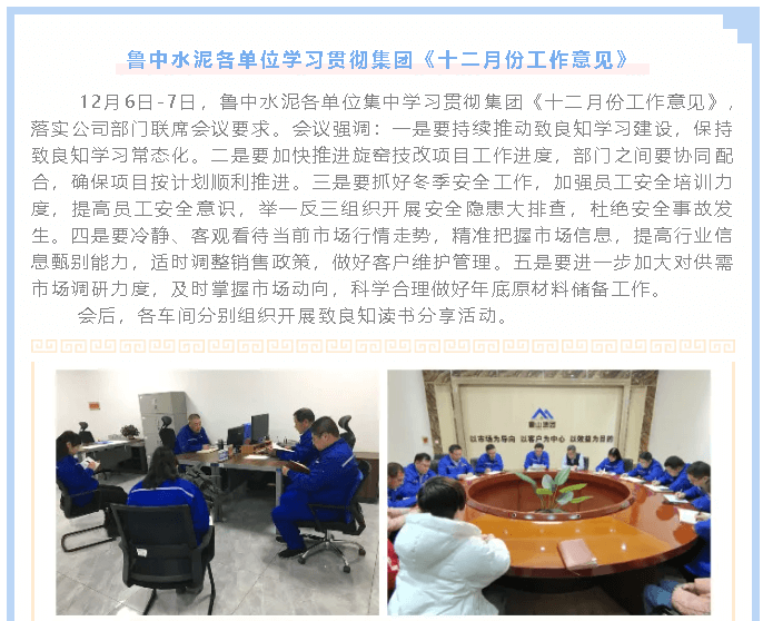 魯中水泥各單位學(xué)習(xí)貫徹集團《十二月份工作意見》