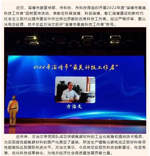 【榮譽(yù)】重山光電總經(jīng)理方治文獲評“淄博市最美科技工作者”稱號