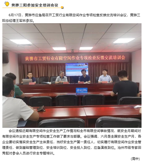 【安全生產(chǎn)月】黃驊三陽(yáng)參加安全培訓(xùn)會(huì)議、鵬峰化工組織安全綜合檢查