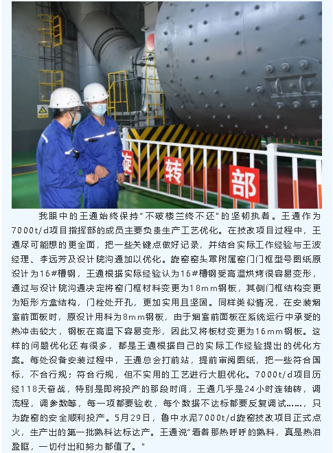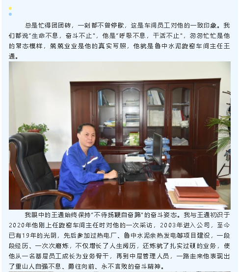 【重山人?重山事】我眼中的“王通”——記魯中水泥旋窯車間主任