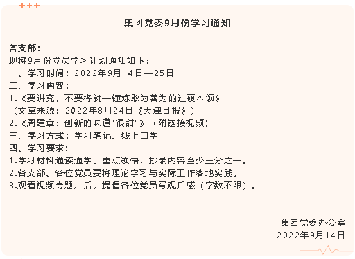 【通知】集團(tuán)黨委9月份學(xué)習(xí)通知