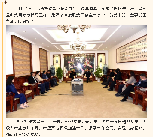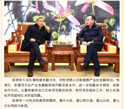 扎魯特旗委書(shū)記邵彥軍到重山集團(tuán)考察指導(dǎo)工作