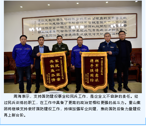 軍民魚水情 共筑強國夢——區(qū)人武部向重山集團贈送錦旗
