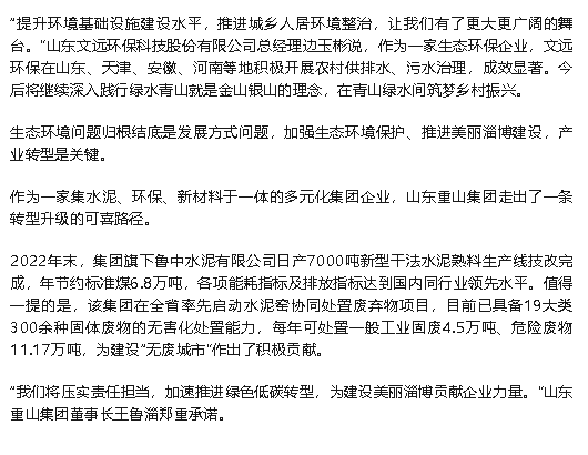 《淄博日報(bào)》報(bào)道重山集團(tuán)綠色發(fā)展成果