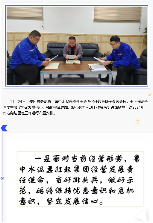 【李總講話大家談】魯中水泥:堅(jiān)定信心促發(fā)展 凝心聚力增效益
