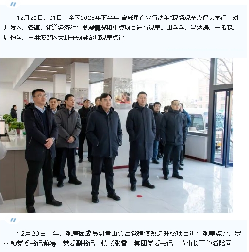 【頭條】全區(qū)2023年下半年“高質量產業(yè)行動年”現(xiàn)場觀摩點評會到重山集團黨建館改造升級項目觀摩