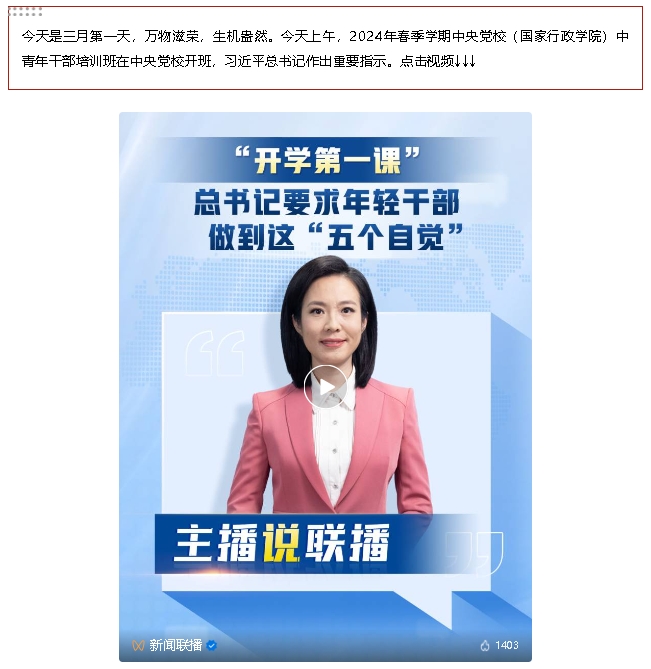主播說聯播 | “開學第一課”,總書記要求年輕干部做到這“五個自覺”
