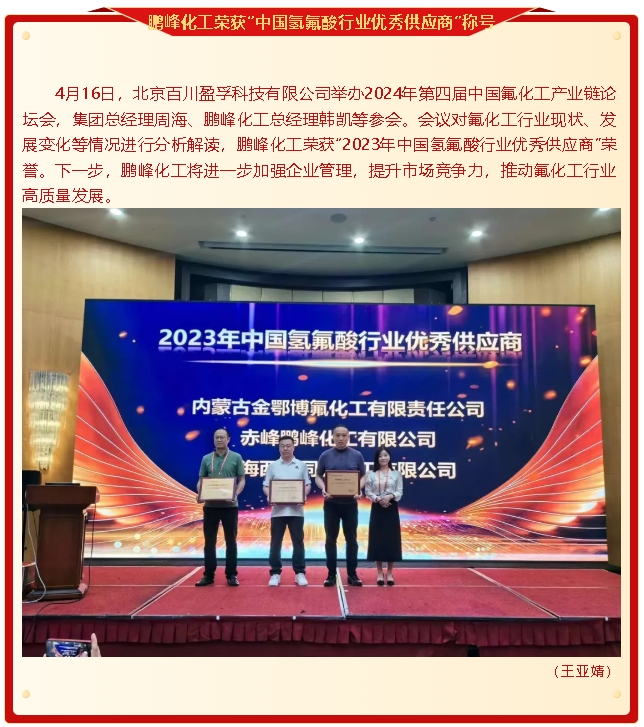 【榮譽】鵬峰化工榮獲“中國氫氟酸行業(yè)優(yōu)秀供應商”稱號、黃驊三陽榮獲河北硅酸鹽學會“優(yōu)秀會員單位”稱號