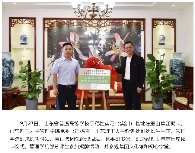 【頭條】山東省普通高等學(xué)校示范性實習(xí)(實訓(xùn))基地在重山集團(tuán)揭牌