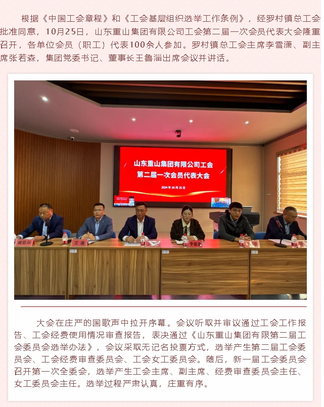 【頭條】工會換屆譜新篇,凝心聚力再起航——山東重山集團有限公司工會換屆圓滿完成