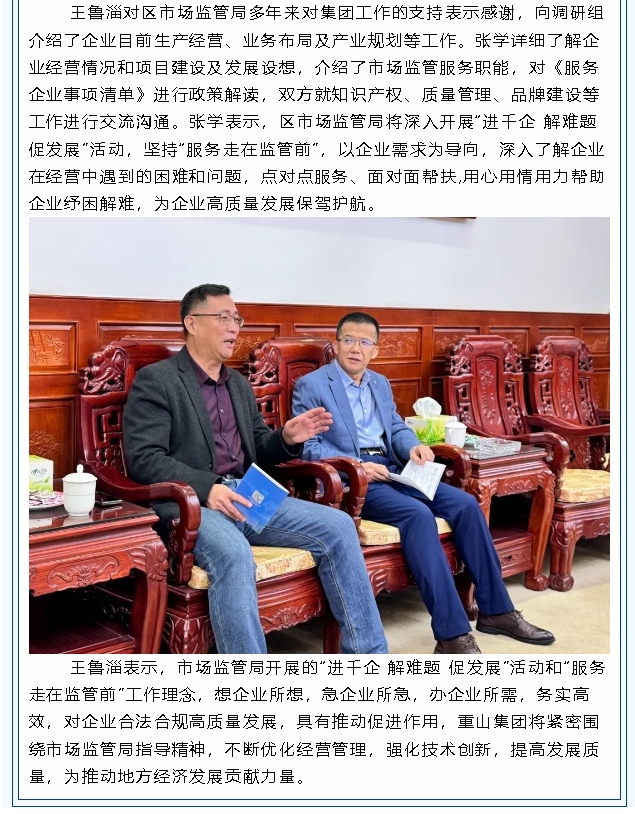 區(qū)市場監(jiān)管局到重山集團(tuán)調(diào)研
