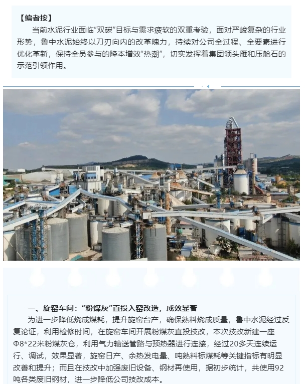 【頭條】刀刃向內、多措并舉創(chuàng)效益 -魯中水泥“節(jié)支降本、挖潛增效”行動紀實(一)