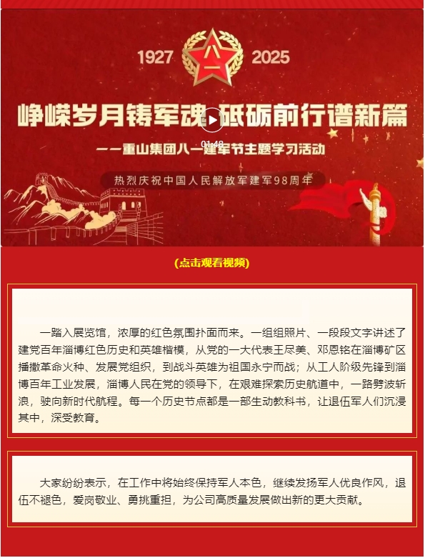 【頭條】崢嶸歲月鑄軍魂 砥礪前行譜新篇——重山集團(tuán)開(kāi)展慶“八一”主題學(xué)習(xí)活動(dòng)