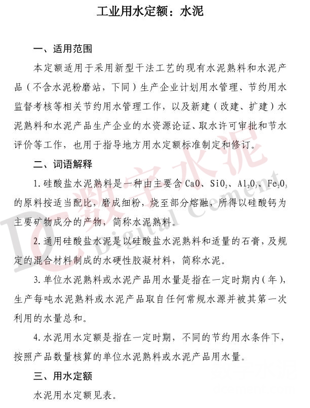 【轉(zhuǎn)載】?jī)刹课“l(fā)水泥工業(yè)用水定額,2021年2月1日起施行!