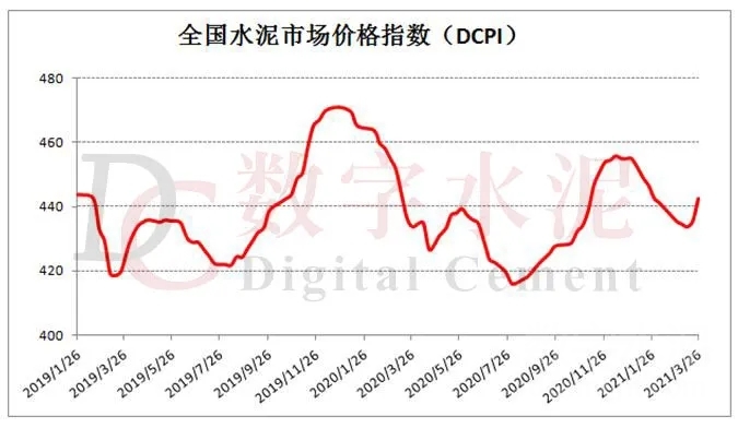 水泥市場(chǎng)綜述:本周(3月22日-3月26日)全國(guó)水泥市場(chǎng)價(jià)格呈現(xiàn)大范圍上漲趨勢(shì),據(jù)數(shù)字水泥網(wǎng)價(jià)格指數(shù)(DCPI)顯示,P.O42.5散裝442.5元/噸,環(huán)比漲幅達(dá)到1.6%。價(jià)格上漲區(qū)域主要集中在華東、中南、西南和西北地區(qū),幅度10-65元/噸;同時(shí)價(jià)格也有出現(xiàn)回落的地區(qū),在河南鄭州、云南昆明和江西九江等局部市場(chǎng),幅度10-30元/噸。