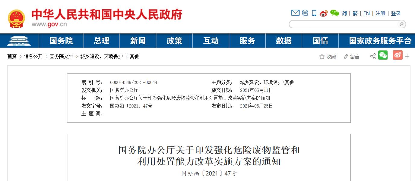 強(qiáng)化危險(xiǎn)廢物監(jiān)管和利用處置能力改革實(shí)施方案