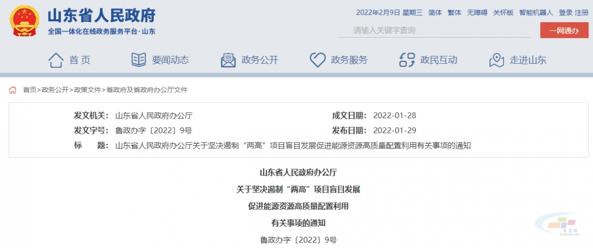 【轉(zhuǎn)載】山東?。簣詻Q遏制“兩高”項目盲目發(fā)展 水泥行業(yè)新上項目必須落實能源消費減量替代