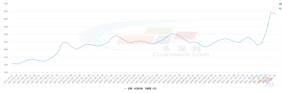 2017-2021.11月水泥價(jià)格當(dāng)期值(月)