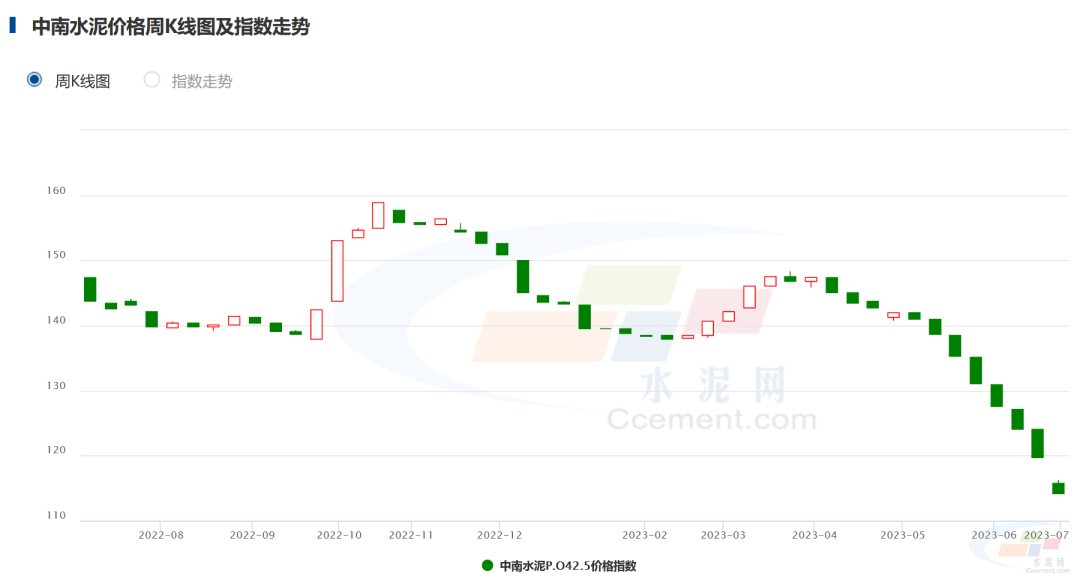 夏季高溫多雨,淡季特征明顯,市場情緒低迷,預計水泥價格仍將延續(xù)跌勢。