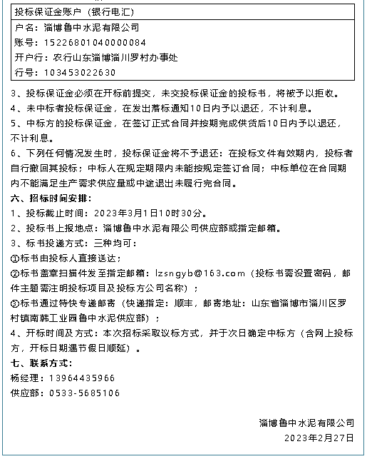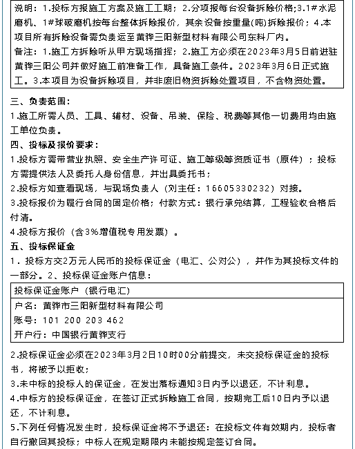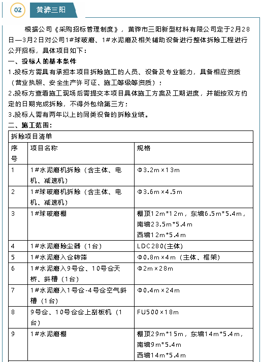 【招標(biāo)公告】魯中水泥、黃驊三陽(yáng)