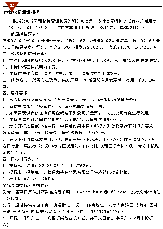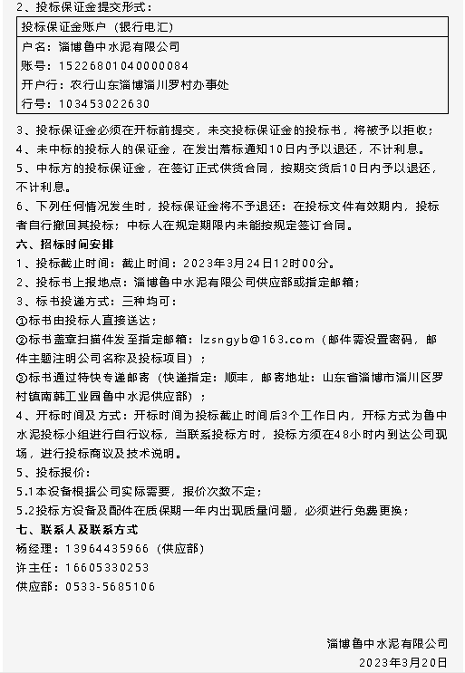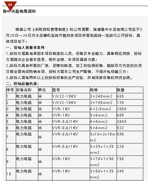 【招標(biāo)公告】魯中水泥電纜、魯蒙水泥煙煤、環(huán)境檢測(cè)項(xiàng)目招標(biāo)