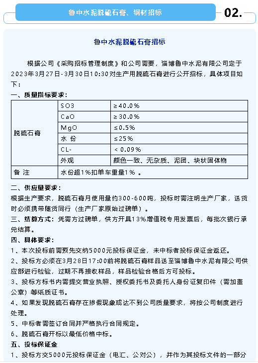 【招標公告】重山集團、魯中水泥、魯蒙水泥